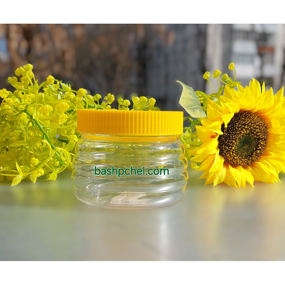 Баночка ПЭТ «Улей» предназначена для хранения и транспортировки мёда. Изготовлена из прозрачного пищевого пластика. В комплект идёт плотно завинчивающаяся крышка.